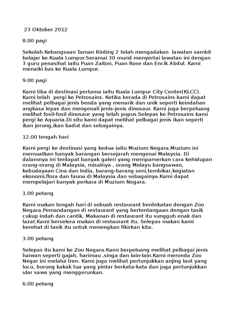 Karangan Lawatan Sambil Belajar Ke Kuala Lumpur Pdf